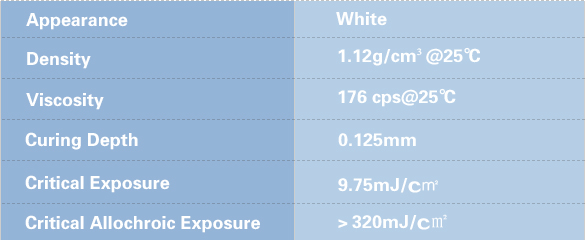 Printed parts have excellent moisture resistance, good chemical resistance, and low shrinkage