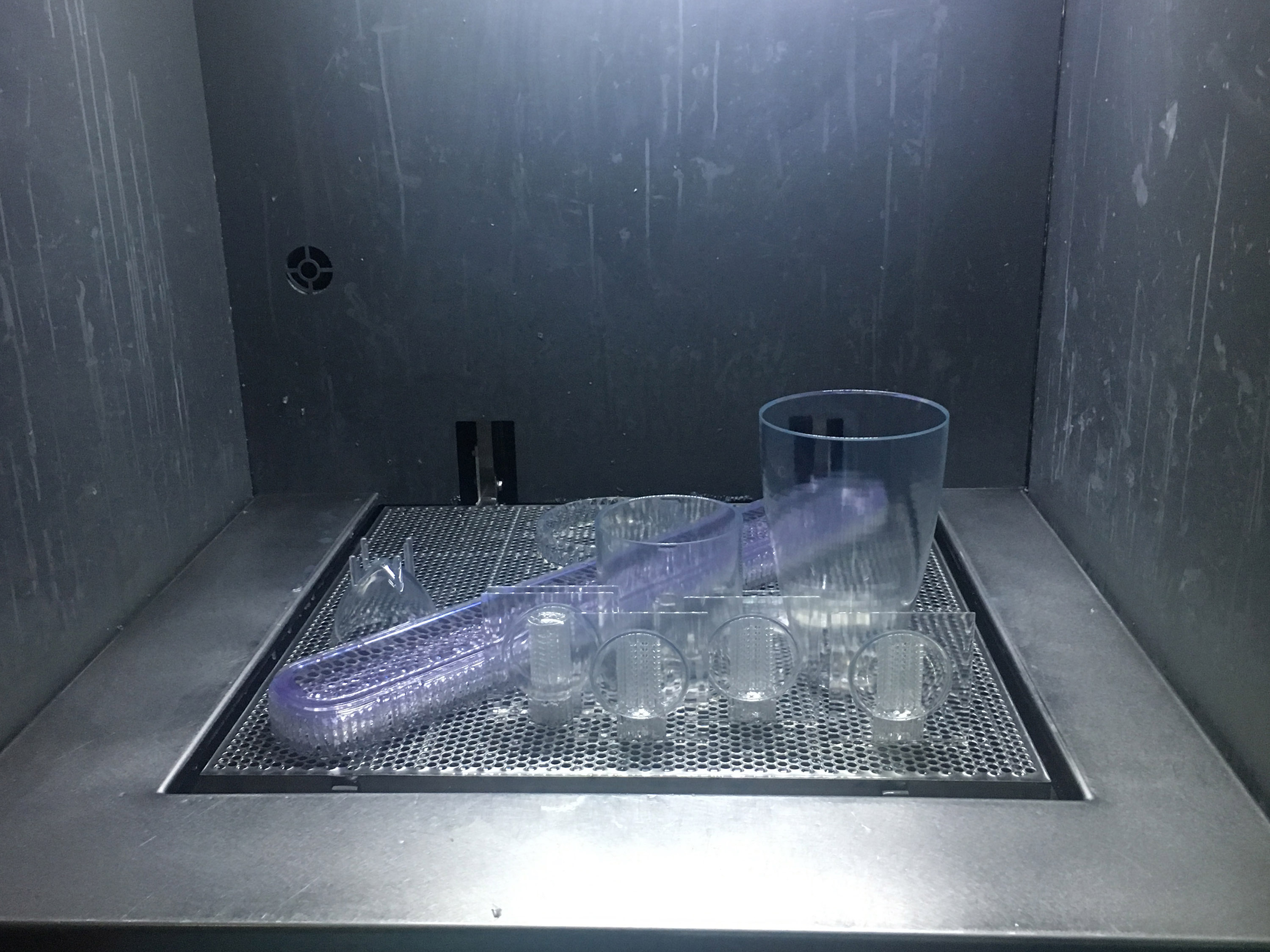 在陶董事長的帶領下,美國客戶一行先行參觀浙創(chuàng)科技3D打印車間。陶董事長詳細介紹了3D打印機的工作原理,并向美國客戶展示了打印完成的整套茶具模型。呈現(xiàn)在客戶面前的并不是最終的手板模型,還會通過專業(yè)的后處理進行加工,力求優(yōu)質。針對美國客戶手板打印的需求,陶董事長提出通過“3D掃描+工業(yè)設計+3D打印”的一站式解決方案,為客戶打印樣品用于驗證,從而減少客戶的研發(fā)成本。
