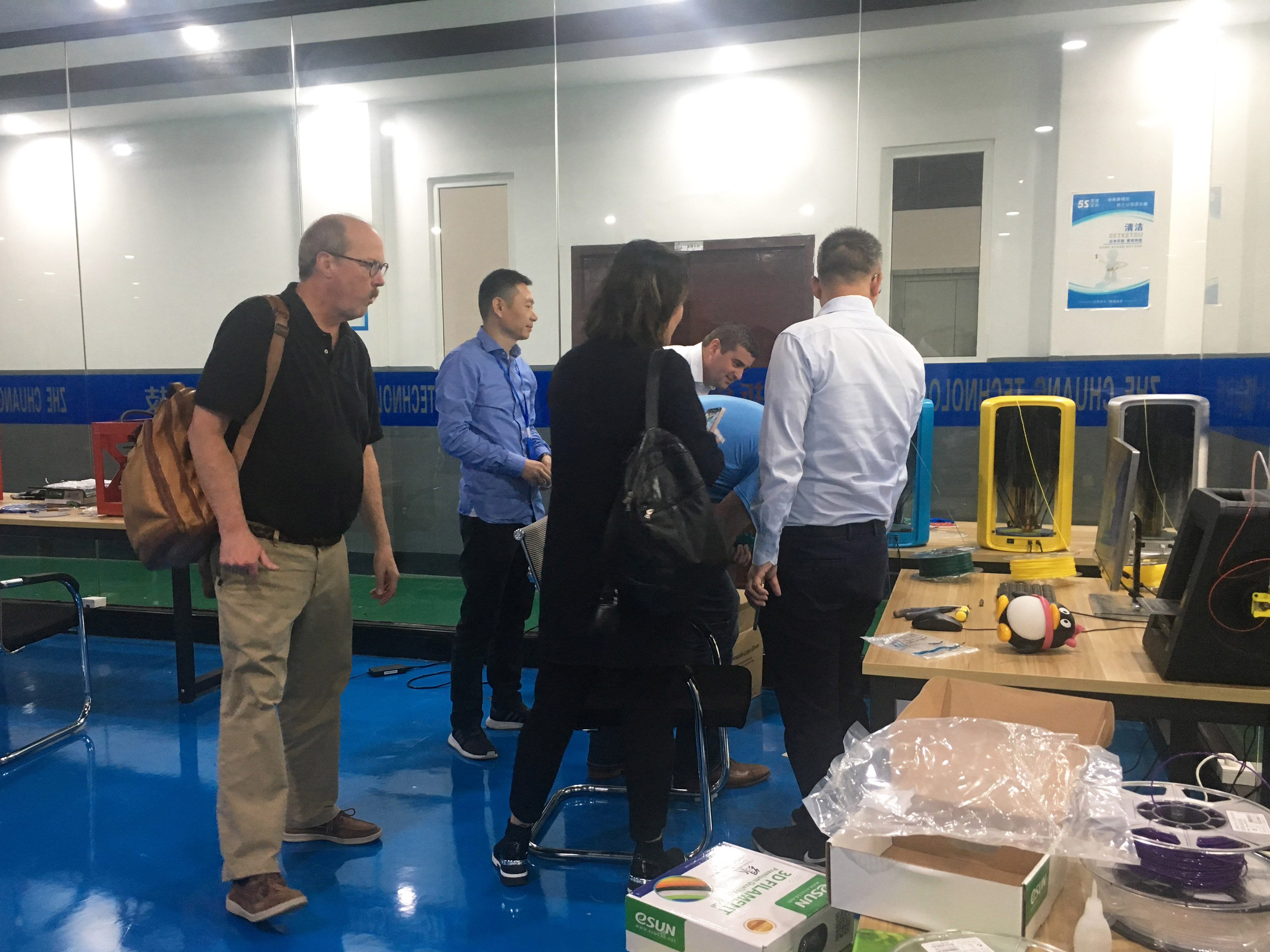 參觀3D打印車間和樣品間后,陶董事長向美國客戶介紹了浙創(chuàng)科技的研發(fā)成果、合作伙伴、業(yè)務發(fā)展等等。最后,陶董事長帶領美國客戶參觀研發(fā)樓,為他們介紹了各種研發(fā)設備。希望通過此次參觀研發(fā)樓,能讓美國客戶更深入的了解3D打印耗材的研發(fā)過程。在參觀過程中,陶董事長就美國客戶提出的相關問題進行了詳細的解答。