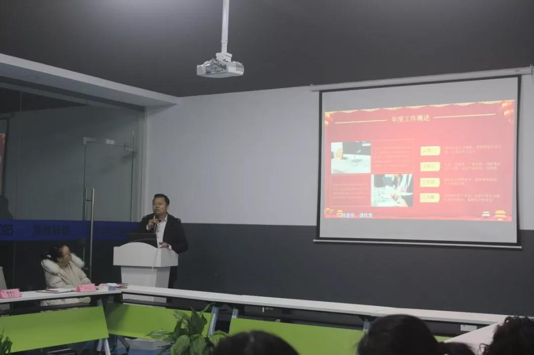 年會伊始,浙創科技總經理陶霖珊為年會致辭,他提到2018年是浙創科技完整度過的第一年,也是摸索前進的一年,并對全體員工在過去一年的付出表示肯定。隨后,生產部經理陶列剛、行政部經理肖靜和財務部經理周海娜分別就各部門的工作進行了匯報。