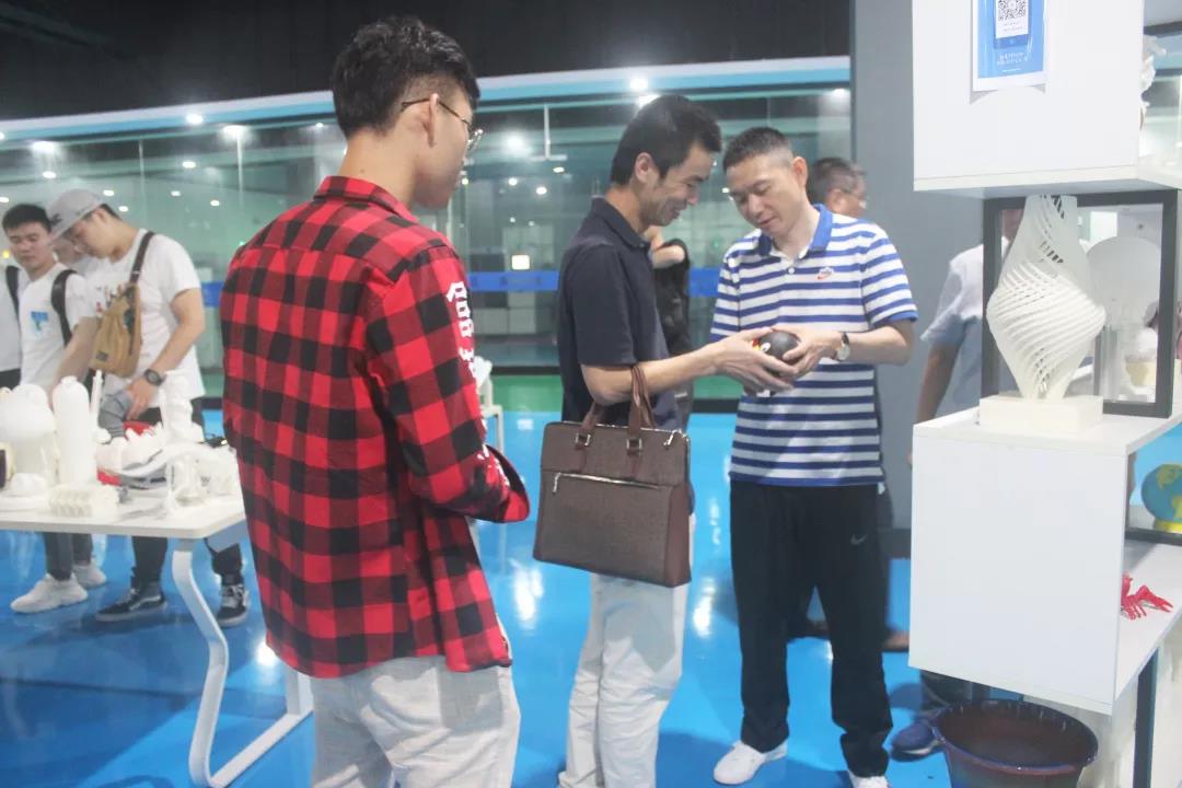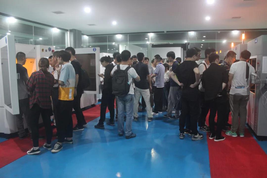 隨后,陶董帶領(lǐng)師生一行參觀3D打印車間和3D打印樣品間,了解3D打印機(jī)的工作原理。學(xué)生們對(duì)3D打印技術(shù)表現(xiàn)出濃厚的興趣,與在場(chǎng)工作人員展開了熱烈討論。產(chǎn)品從設(shè)計(jì)到驗(yàn)證再到開模過(guò)程中,3D打印技術(shù)作為其中重要的一環(huán),可降低高校及企業(yè)研發(fā)創(chuàng)新的成本,助力“中國(guó)制造”走向“中國(guó)智造”。除此之外,學(xué)生也可以不受局限的設(shè)計(jì)畢業(yè)作品,通過(guò)3D打印技術(shù)呈現(xiàn)出來(lái)。