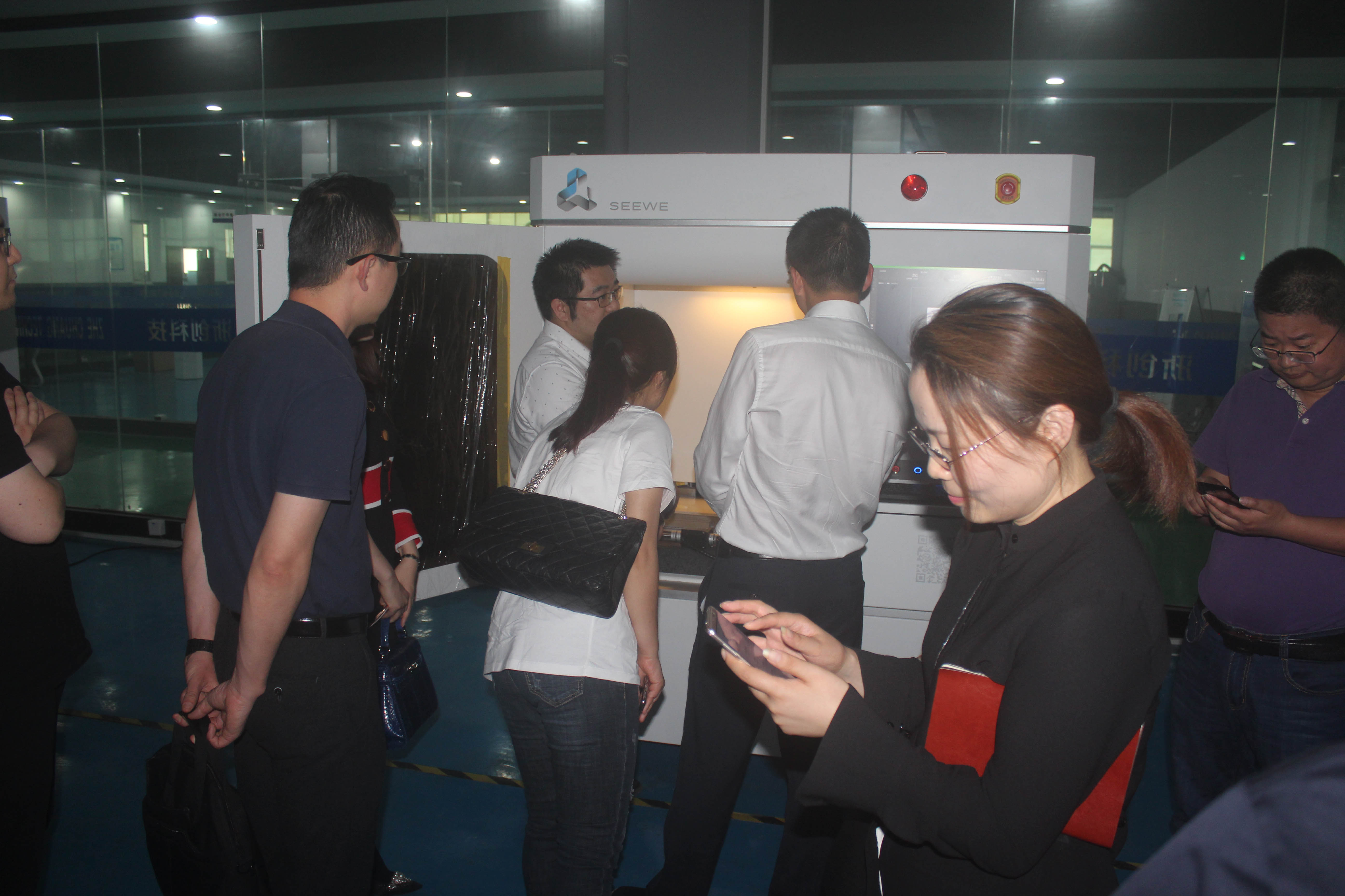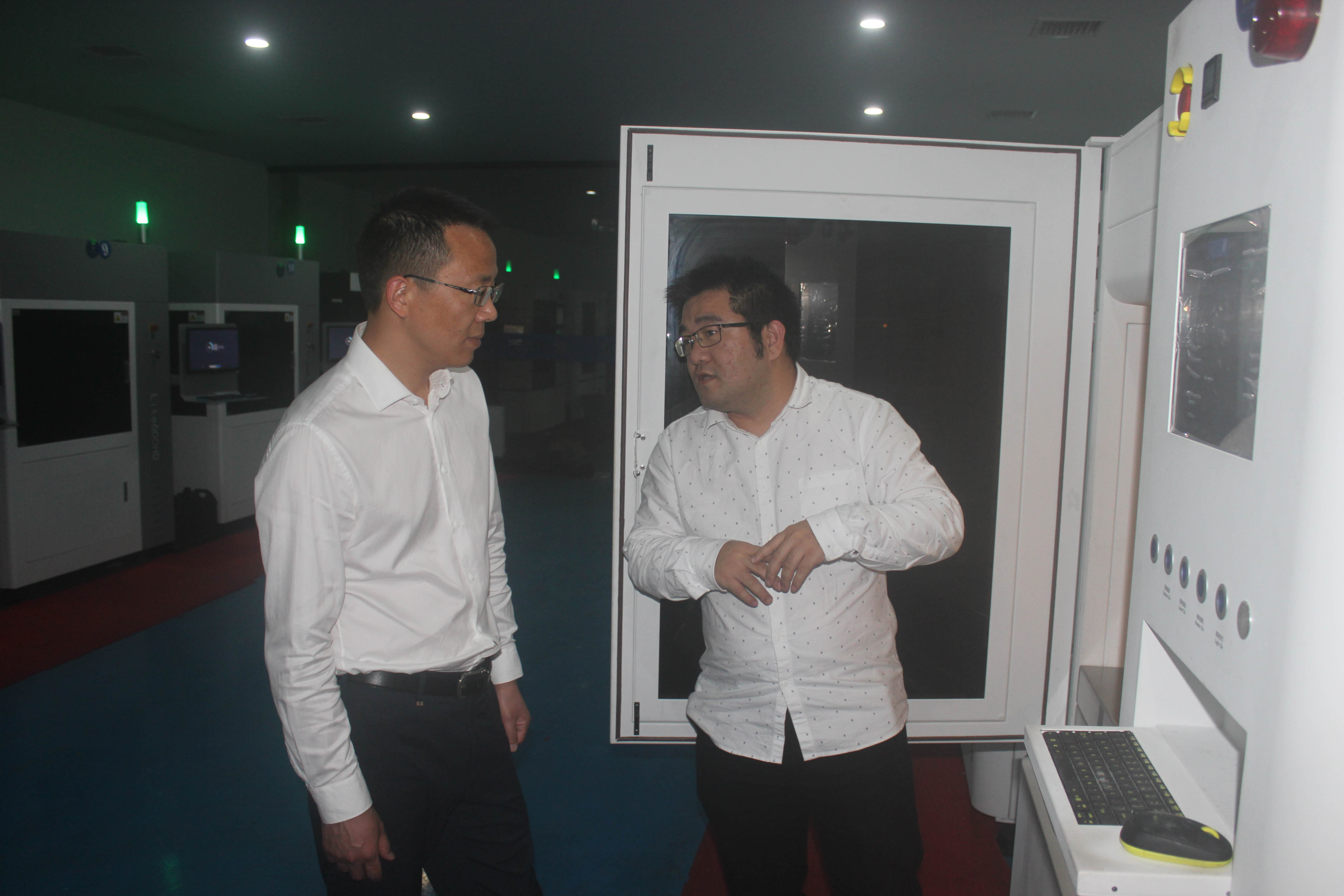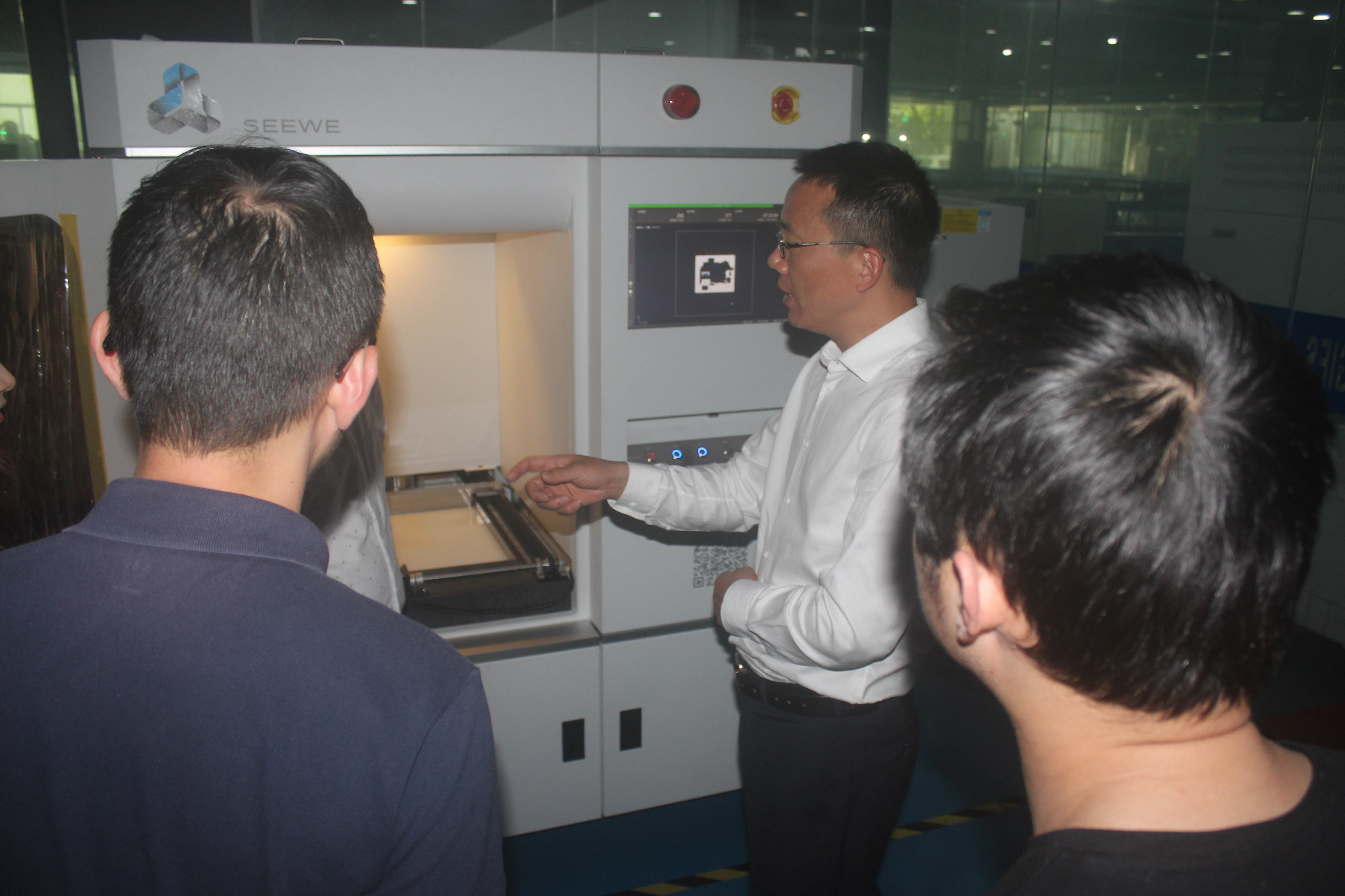 隨后在陶總的陪同下,大家首先參觀了3D打印車間。參觀過程中,陶總講解了SLA工業級3D打印機打印流程,3D打印機的工作原理,組織領導觀察SLA成型方式,并展示了浙創自主研發的SLA工業級3D打印機及3D打印材料。在了解浙創3D打印園目前各項工作已經有了完整的工序后,領導一行給予了認可,并期望浙創繼續堅持科技創新發展理念。