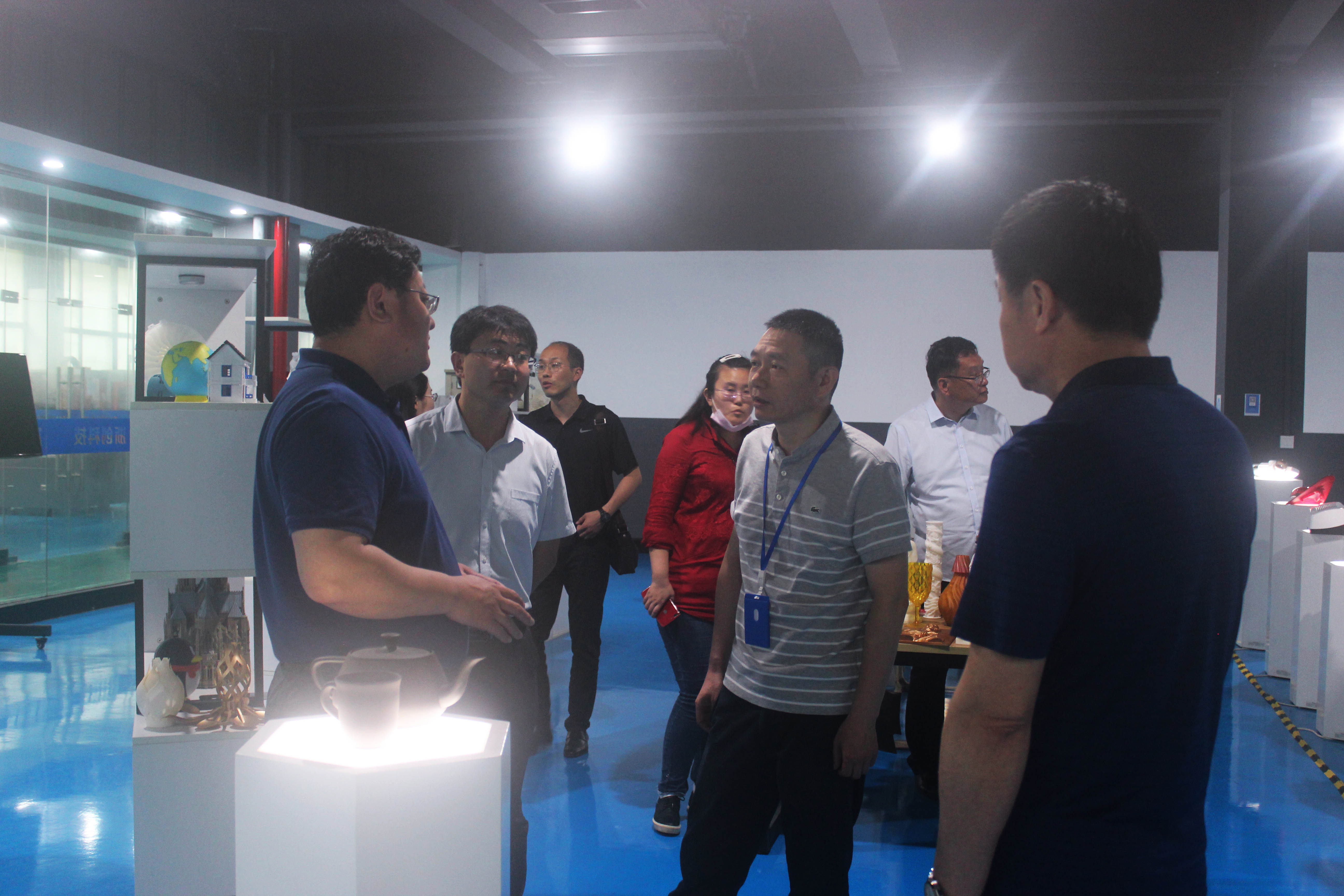 為了進一步了解3D打印技術(shù),在3D打印樣品間,陶董向領(lǐng)導(dǎo)們一行展示了通過后處理的3D打印成品,與領(lǐng)導(dǎo)一行熱烈探討了3D打印在家電、汽車、醫(yī)療等行業(yè)的應(yīng)用與發(fā)展,并就浙創(chuàng)科技3D打印在科普教育領(lǐng)域的成果進行了簡單交流,獲得了領(lǐng)導(dǎo)們的一致好評。